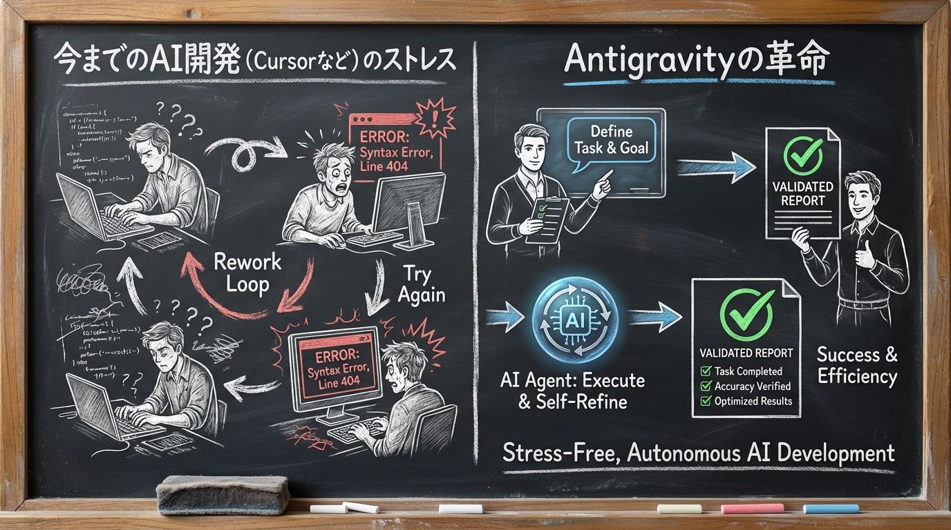 「乗り換えるコストを払ってでも、Antigravityを使うメリットは何?」 最大のメリットは、「手戻りの消滅」です。